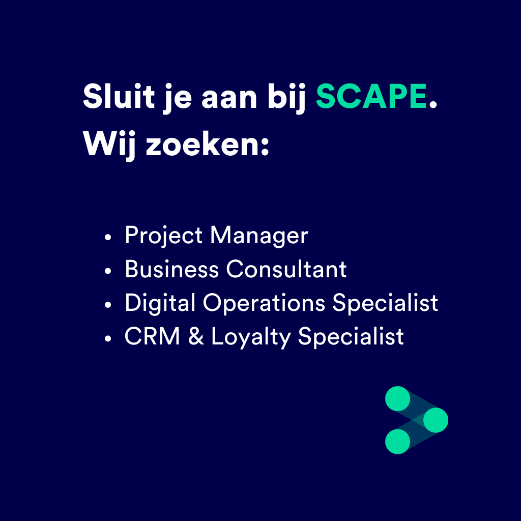 Werk je met SCAPE, dan brengen wij een netwerk mee van bewezen Omnichannel-partners. Een gebalanceerde mix van software-, integratie-partners én zelfstandige professionals. Zij hebben dezelfde attitude en focus en vormen ons ecosysteem. Organisch ontstaan door successen te behalen waarin we elkaar versterken en de klant altijd op de eerste plaats zetten.